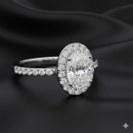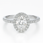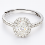 Stone: Moissanite (Oval Cut – 5x7mm 1.0ct; Round Accents ? 1.0mm x Multiple)