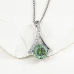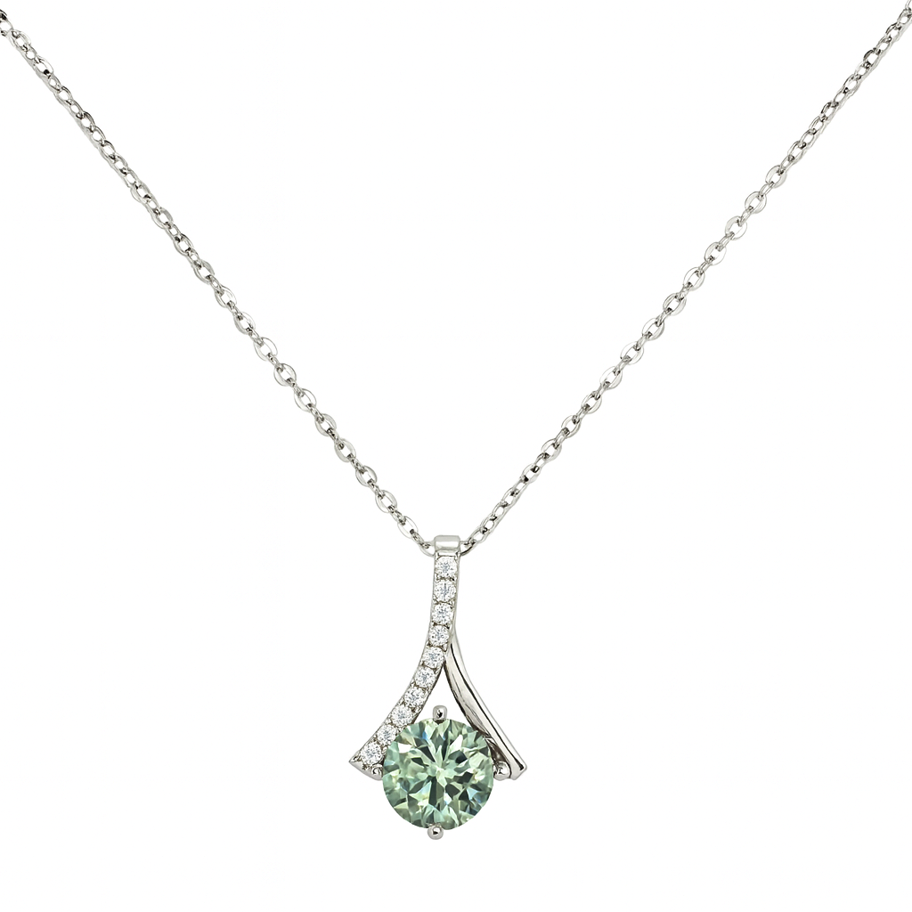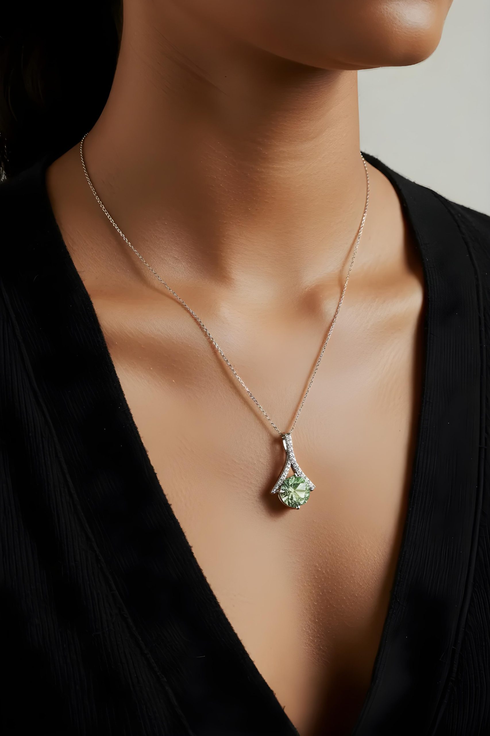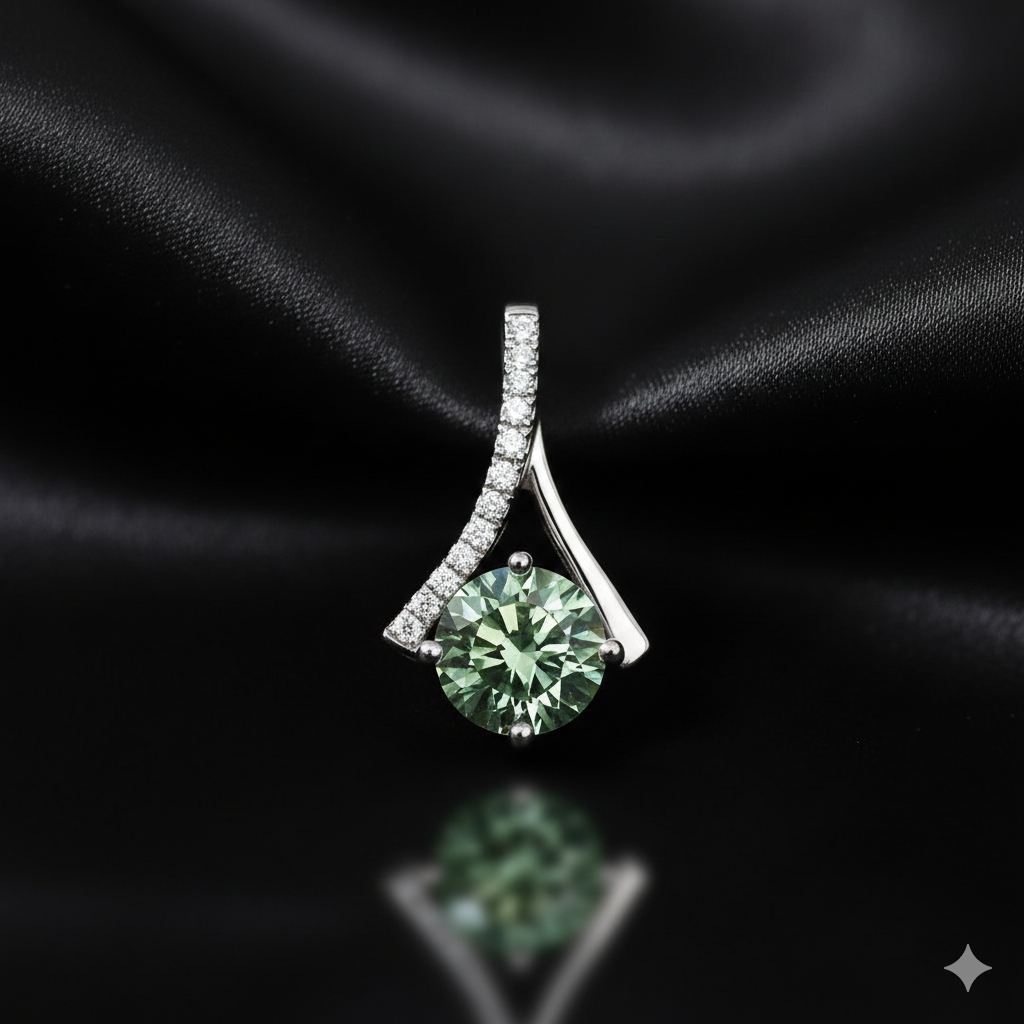 Handcrafted in pure 925 sterling silver, this pendant showcases the serene beauty of a green moissanite gemstone, radiating both depth and vibrance. Its clean lines and minimalist setting allow the stone?s natural brilliance to take center stage, while the subtle polish adds a contemporary edge.