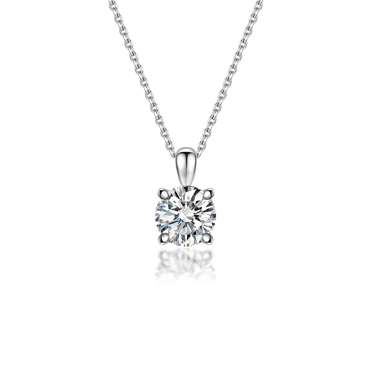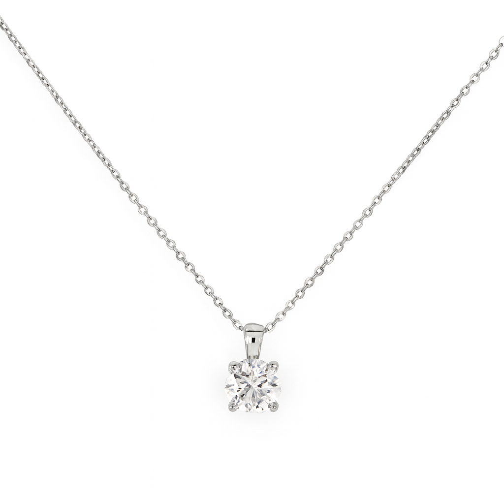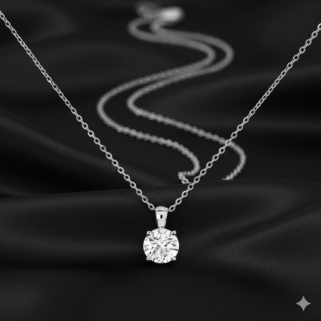 Handcrafted in pure 925 sterling silver, this pendant captures timeless sophistication in its simplest form. The round moissanite is held securely by a refined prong setting, allowing light to pass through every facet for unmatched brilliance.