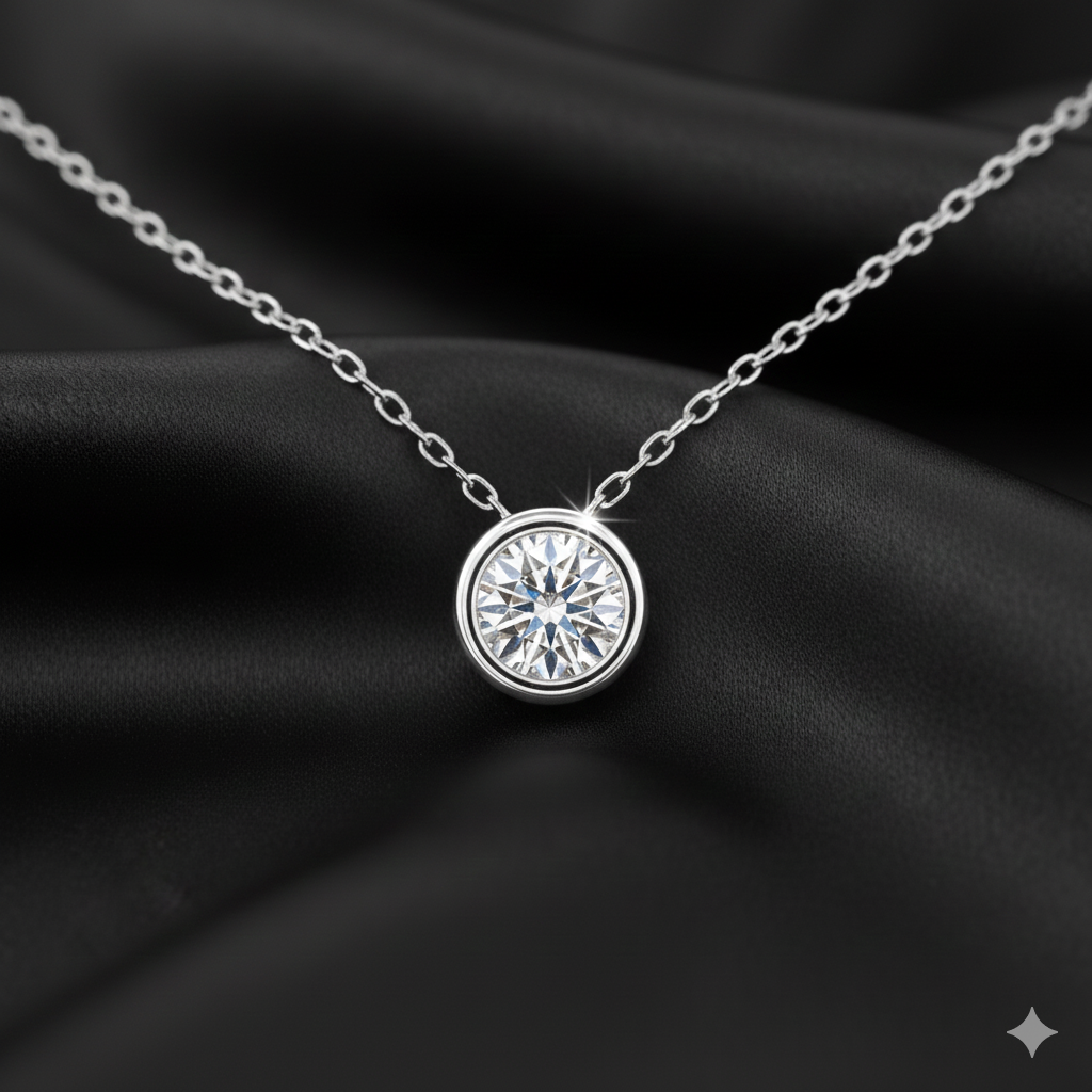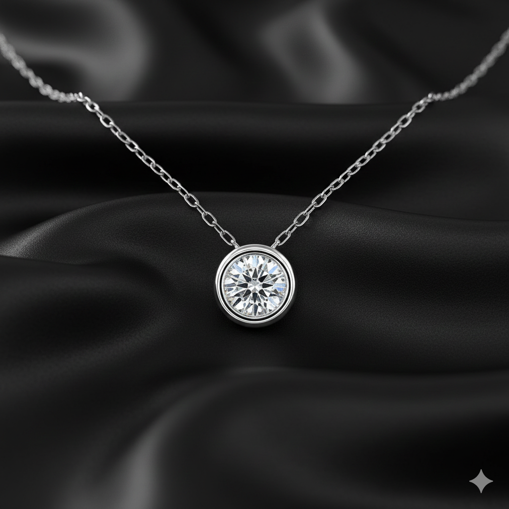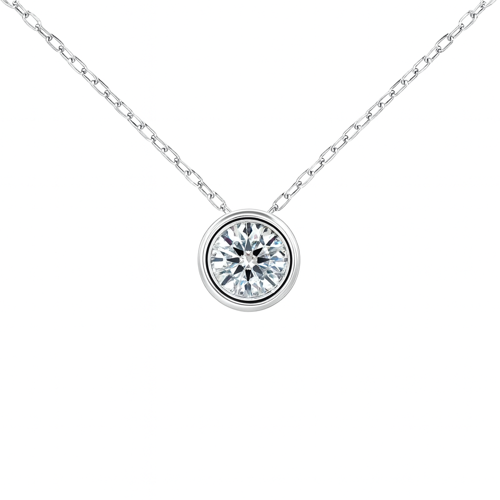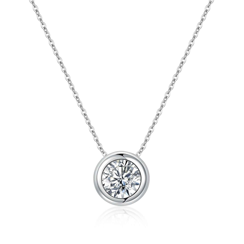 Handcrafted in pure 925 sterling silver, this pendant celebrates the beauty of simplicity. A 6.5mm, 1-carat moissanite rests in a smooth bezel setting that accentuates its brilliance while ensuring a clean, contemporary profile.