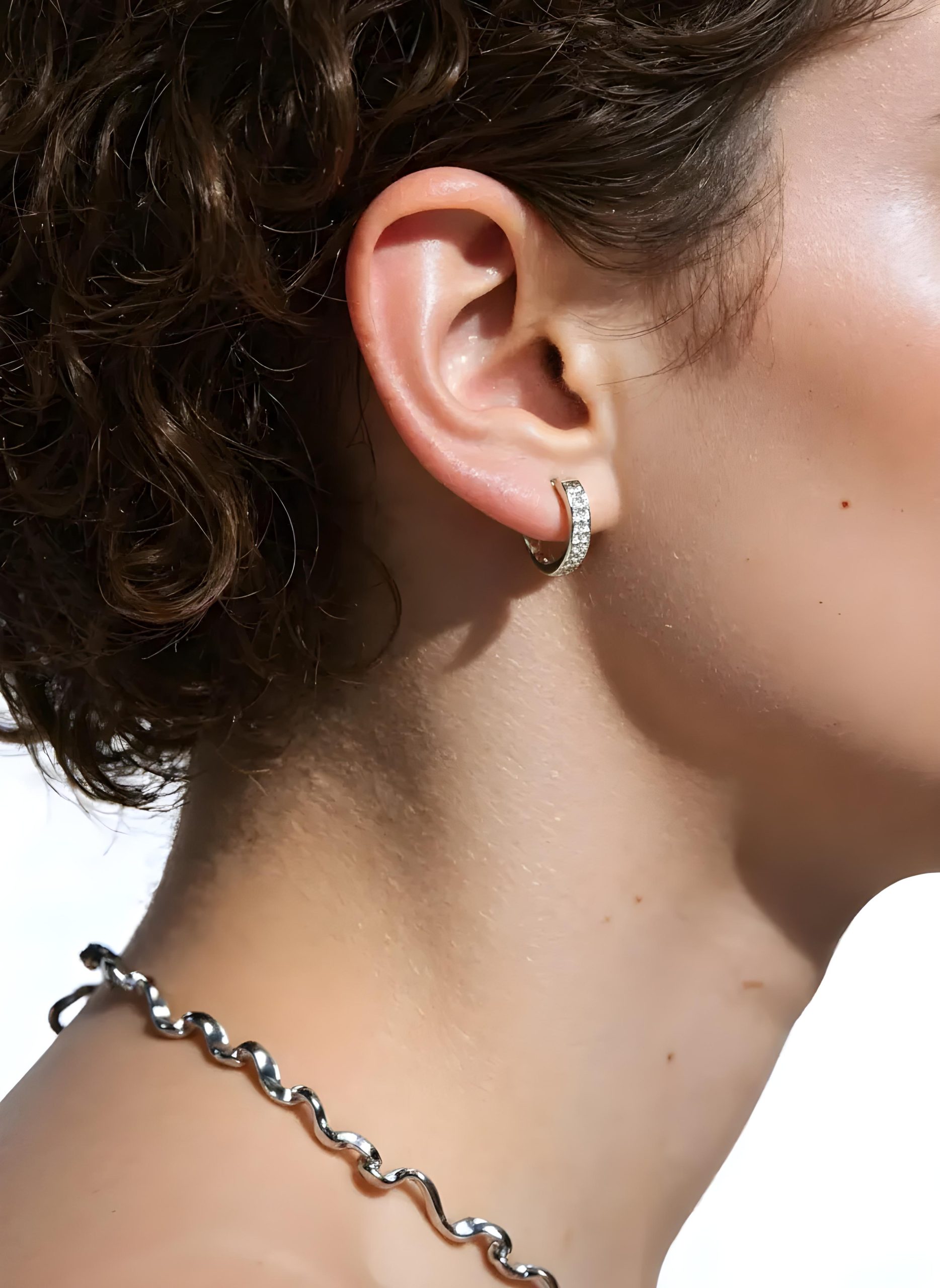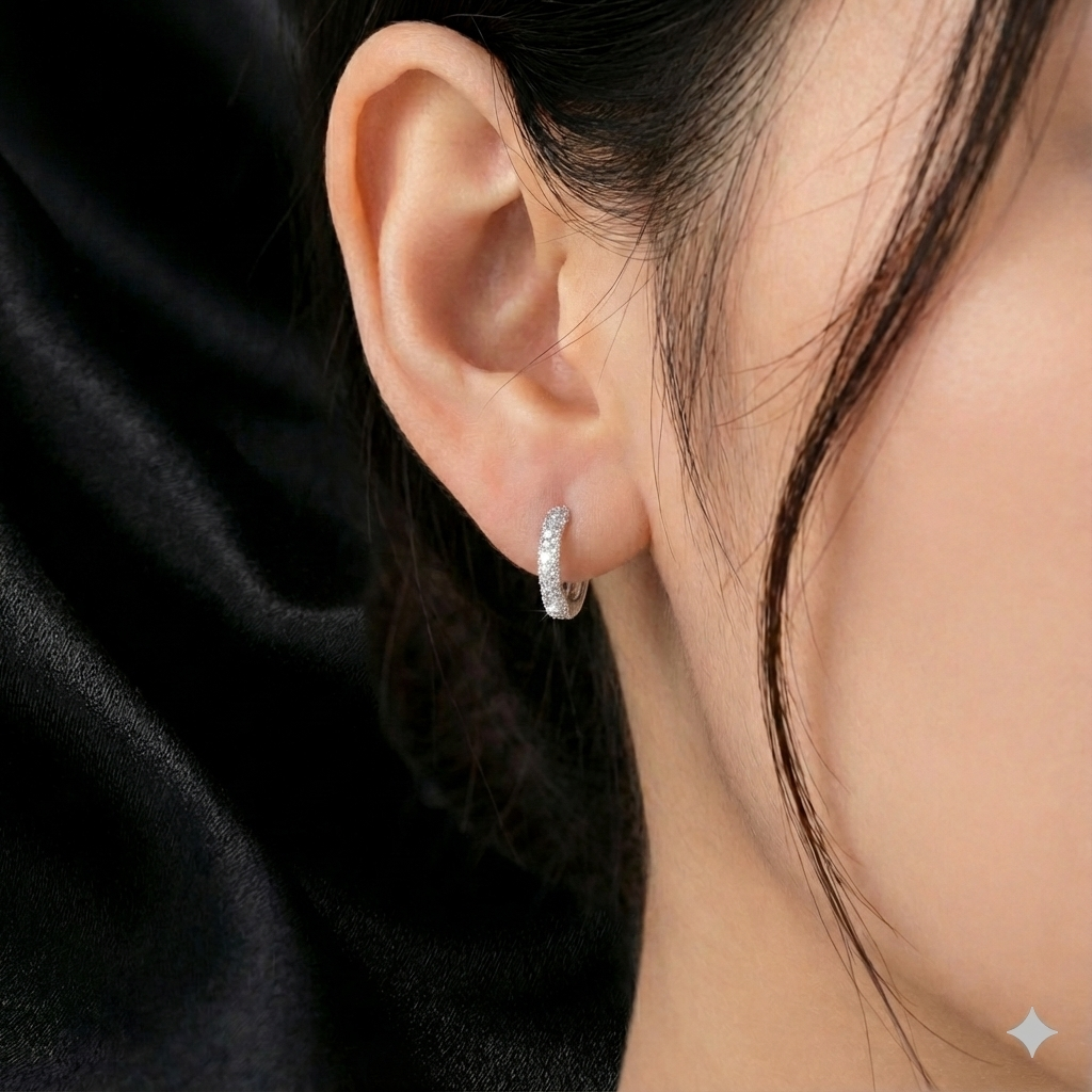 Crafted in pure 925 sterling silver, these 10mm mini hoops feature a fine row of pave-set moissanites that create a soft, luxurious sparkle. Designed for everyday elegance, they?re lightweight yet luminous – a perfect blend of comfort and sophistication.