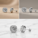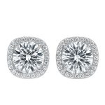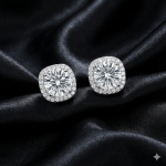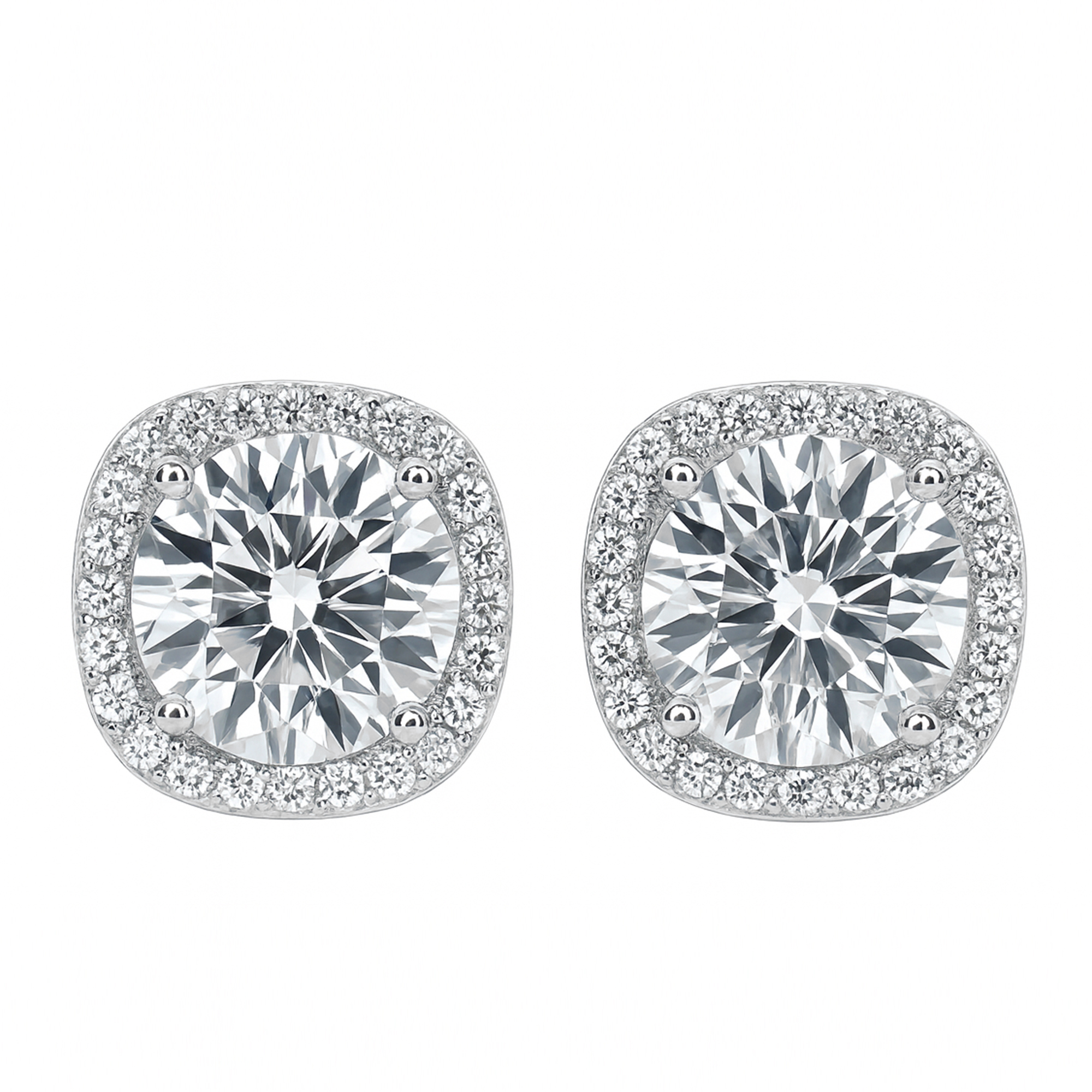 Crafted in pure 925 sterling silver, these sophisticated halo studs feature 9.0mm round moissanites encircled by fine accent stones that magnify their brilliance. The cushion-shaped halo adds depth and elegance, reflecting the perfect harmony between sparkle and softness.